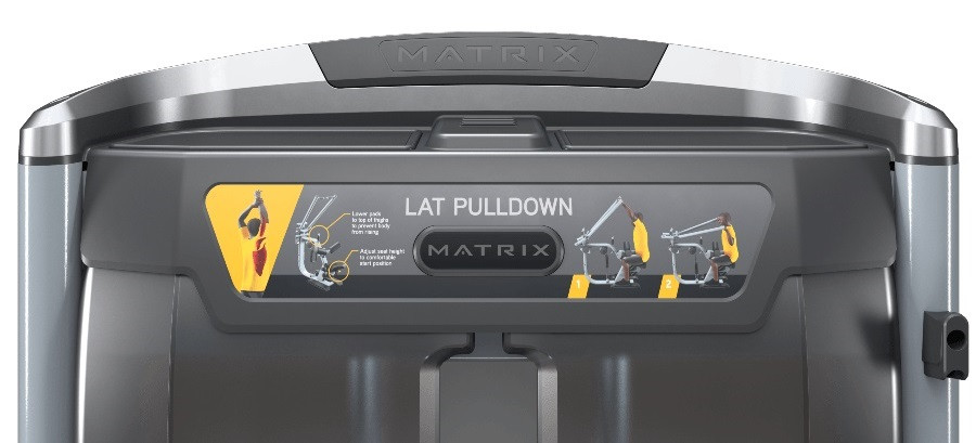 На передней панели корпуса силовых тренажеров Ultra Base расположены наглядные информационные таблички с инструкцией по правильному выполнению целевого упражнения. Цветовая индикация демонстрирует целевые группы мышц и правильное использование тренажера, а выделение цветом поворотных точек помогает правильно расположить корпус.