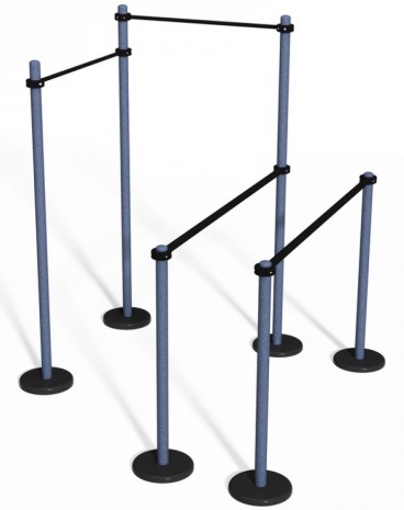Уличный комплекс состоит из двухуровневого турника и брусьев.