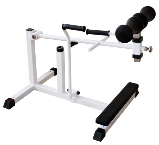 Рама его конструкции исполнена из металлического профиля толщиной 2 мм: в несущей части – прямоугольного сечения 50х50 мм, вспомогательные – овального сечения. Металл окрашен с использованием порошковой технологии, что делает покраску долговечнее и менее опасной с санитарной точки зрения. Для недопущения возможных травм концы профиля защищены заглушками из ПВХ. Из этого же безопасного материала исполнены валики-подлокотники (устанавливаемые в одном из пяти фиксированных положений в зависимости от роста пациента), насадки на рукояти для сохранения равновесия и подпятники на ножки, препятствующие скольжению тренажера, гасящие нежелательные вибрации и сохраняющие пол от царапин. Большая подножка для ступней исполнена из полиуретана.