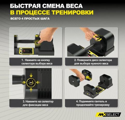 Пара гантелей MX Select MX100 EVO — это воплощение инженерного совершенства, созданное для тех, кто не приемлет полумер в вопросах личной продуктивности и комфорта. Гантели с прорезиненной текстурированной рукоятью.