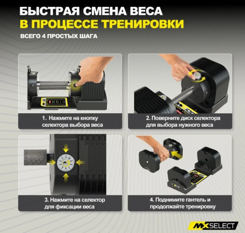 Пара гантелей MX Select MX100 EVO — это воплощение инженерного совершенства, созданное для тех, кто не приемлет полумер в вопросах личной продуктивности и комфорта. Гантели с рифленой стальной рукоятью.
