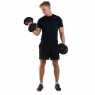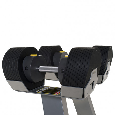 Гантели имеют набор весов от 4,5 до 24,9 кг с шагом 2,25 кг. Особенностью гантелей MX-55 является их сбалансированная, монолитная конструкция без выступающих частей. В комплекте идет стильная стойка.