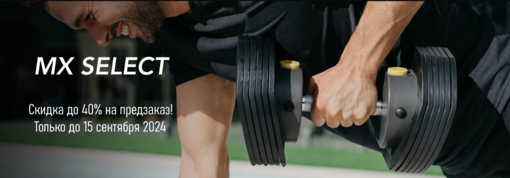 Штанга наборная MX-80 бренда MX Select оснащена запатентованным механизмом выбора веса, который имеет шаг 2,25 кг.