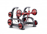 Конструктивной особенностью нагружаемого дисками оборудования является наличие независимых рычагов, позволяющих разделять нагрузку. Это дает возможность совершать асинхронные движения по сходящихся и расходящихся траекториях, выполняя упражнения для проработки мышц рук или ног по отдельности, вместе или поочередно. Сделать тренинги более разнообразными можно за счет использования разных нагрузок для правой и левой части тела.