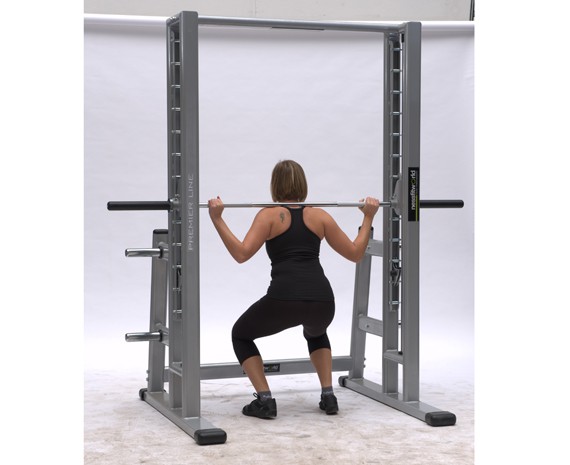 Машина по всей высоте стоек получила фиксаторы штанги, они позволяют каждому пользователю начать упражнение из наиболее удобного стартового положения. Также, на этой машине очень удобно и безопасно будет завершать тренировки, вернув штангу в исходное положение на фиксаторы. В качестве дополнительного плюса в приобретении этой машины является специальные держатели для хранения дисков, благодаря которым не нужно будет отвлекаться от проведения тренировки, если спортсмен решил увеличить нагрузку. Дополнительные диски будут находиться рядом.