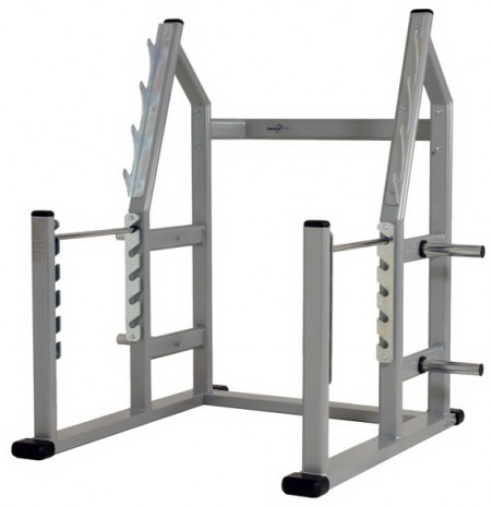 Держатели для штанги, расположенные в 4-х уровнях, и регулируемые в 5-ти положениях ограничители на стойке позволяют начинать и заканчивать упражнения со штангой из любой позиции.