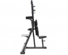Конструктивно скамья для жима составляет единое целое со стойкой для штанги, что обеспечивает надежную устойчивость тренажера, позволяя пользователю сконцентрировать внимание на выполняемом упражнении.