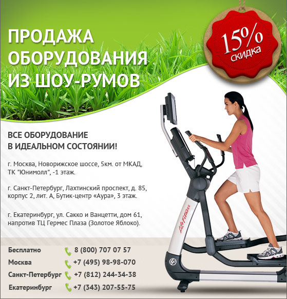Акция - скидка до 15% на тренажеры из шоу-румов!
