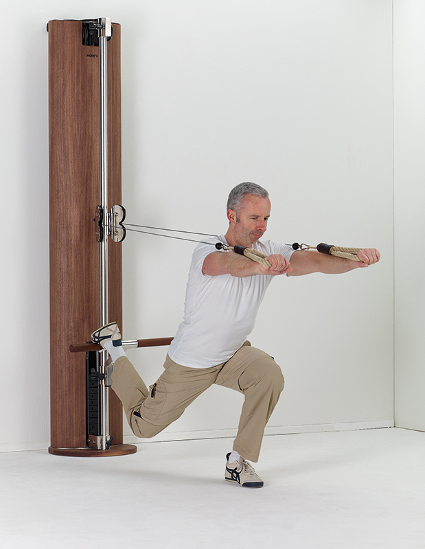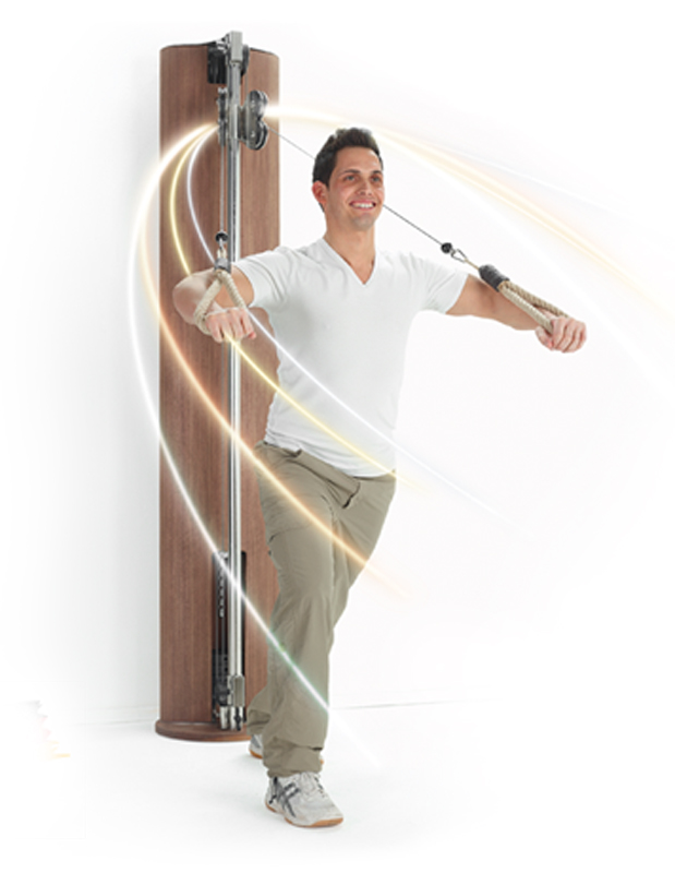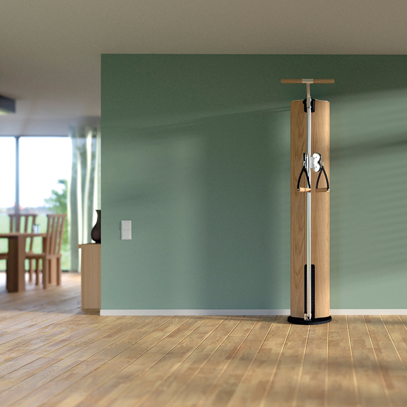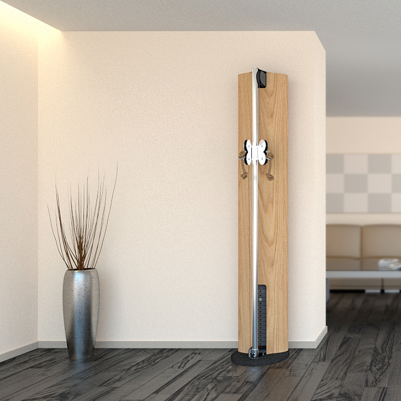 Утонченный дизайн тренажера, выполненного из натуральных материалов, сразу обращает на себя внимание, неизменно притягивая все взгляды. Каждый тренажер выполняется вручную из натурального дерева. Идеально обработанные поверхности обладают гармоничными овальными формами. Тренажер обладает компактными габаритами и занимает всего 40 см по ширине стены, поэтому он занимает не больше места, чем обычный стул.