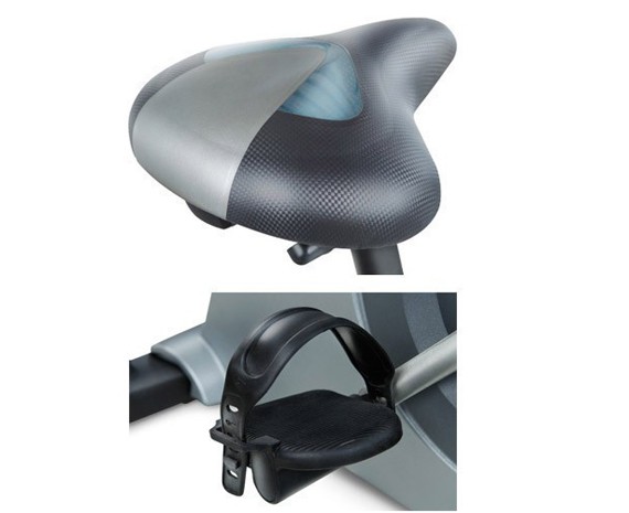 Регулируемое мягкое сиденье обеспечивает максимально удобное положение любому пользователю. Оно обладает вертикальной и горизонтальной регулировками. Для дополнительного комфорта в сиденье расположены специальные гелевые вставки. Даже длительное занятие не доставит дискомфорта занимающемуся человеку. При помощи двойной регулировки руля занимающийся человек может установить оптимальное положение, в зависимости от своих предпочтений и особенностей комплекции.
