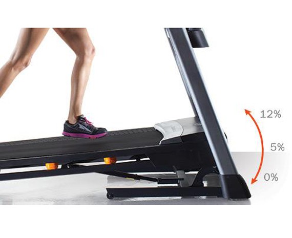 Регулировка тренировочной нагрузки осуществляется изменением угла наклона бегового полотна в диапазоне от 0% до +12%. Регулировка угла наклона осуществляется электрическим способом с помощью системы Digital OneTouch® Control.