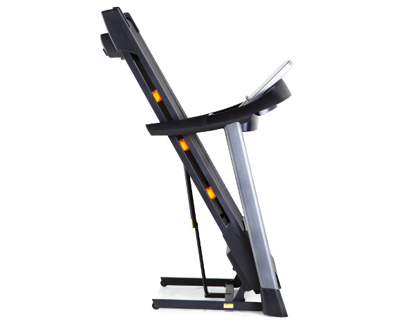Данная беговая дорожка отлично подходит для ежедневного домашнего использования. Пакет программ включает 24 предустановленных режима. Мощный двигатель работает бесшумно и ровно. В сложенном виде хранить модель можно в вертикальном состоянии. Наличие газовых доводчиков является дополнительным плюсом конструкции. При необходимости можно без труда отрегулировать угол наклона беговой дорожки. Помимо этого предусмотрены специальные кнопки для мгновенного изменения скорости. Жидкокристаллический 6-дюймовый дисплей отображает дистанцию, диаграмму тренировки, скорость, часы, угол наклона, время занятия, а также пульс и расход калорий. За показаниями пульса постоянно следит встроенный кардиоприемник. Он позволяет сделать каждую тренировку максимально эффективной и безопасной. На поручнях встроены точные сенсорные датчики.