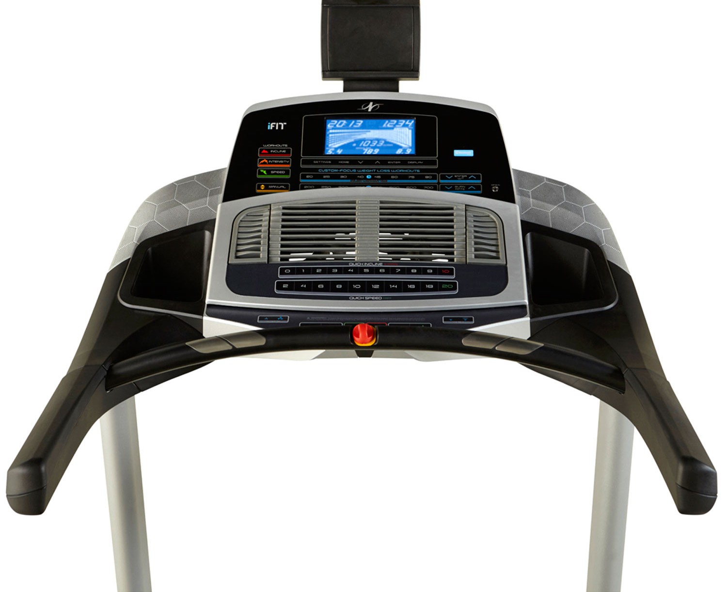 Уникальная усовершенствованная беговая дорожка T7.0 бренда NordicTrack получила более мощный двигатель, усиленной системой амортизации FlexSelect, которая предполагает возможность менять жесткость и LCD дисплеем больших размеров, диагональю в 7 дюймов. К дисплею можно подключать дополнительный нагрудный датчик для фиксации пульса, также к дисплею можно будет подключить планшет с приложением iFit® Live, все это стало возможным благодаря Bluetooth. В комплектацию к дорожке также входит мощный регулируемый вентилятор и держатель для планшета. Дорожка предлагается по доступной стоимости.