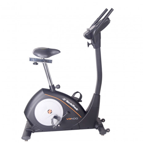 VX400 бренда NordicTrack представляет собой отличный велотренажер предназначенный для домашнего применения, который имеет в своем арсенале уникальную технологию электромагнитного сопротивления, работающую чрезвычайно тихо и получившую название – SMR. Тренажер позволяет регулировать степень нагрузки из 20 стандартных вариантов. Сиденье оснащено простой системой настройки. Также дополнительно имеется практичный небольшой 5-дюймовый экран, 20 установленных программ тренировок, современная система iFit Grip Pulse, которые находятся на рукоятях. Высокий уровень комфорта тренировок обеспечивают интересные дополнения: подставка для планшета, наличие разъема для подключения плеера, а также мощные встроенные динамики, обеспечивающие хороший стерео звук.