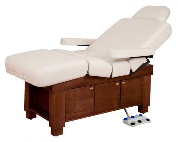 Поверхность представлена в двух вариантах - Flat и Electric Salon. При помощи особого электроподъемника, который представляет собой многофункциональную ножную педаль управления, можно без усилий изменять конфигурации и высоту стола.