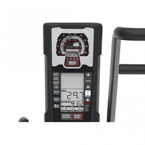 На консоли есть дисплей «Тахометр», который отображает интенсивность тренировки и количество сожженных калорий в минуту. Технология автоматической калибровки обеспечивает точность измерений тренировочных параметров. С помощью калибровки устраняется воздействие таких факторов, как температура, высота над уровнем моря и влажность. Поэтому AirdyneX идеально подходит для спортивных тренировок, тестирования и проведения соревнований. На дисплее одновременно отображаются сердечный ритм, дистанция, мощность в ваттах, количество сожженных калорий.