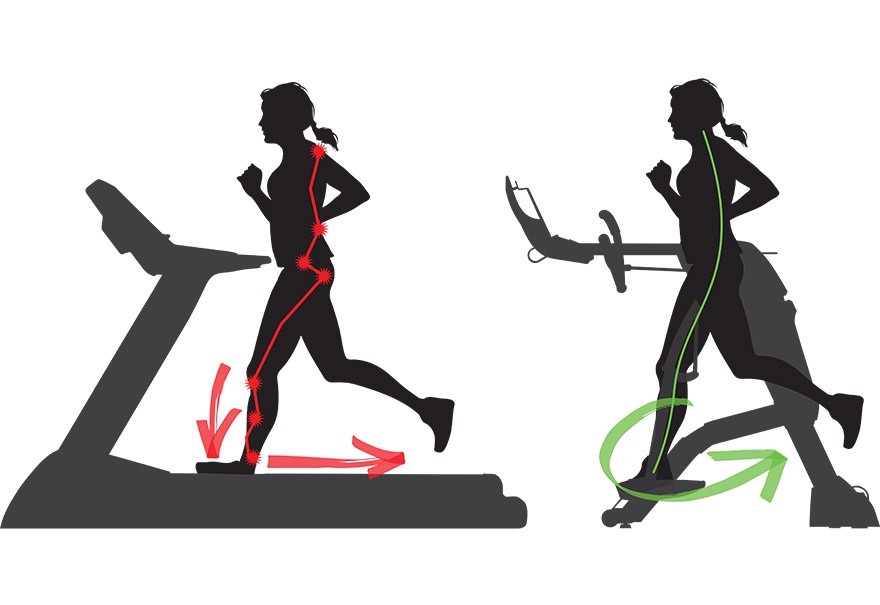 Несмотря на то, что поверхность беговой дорожки оснащена системой амортизации, она все равно не способна полностью исключить нагрузку на суставы, поэтому каждый шаг оказывает больше давление на тело. Кроме того, бег на беговой дорожке отличается от бега по естественному покрытию, так как приходится приспосабливаться к движущейся ленте.