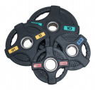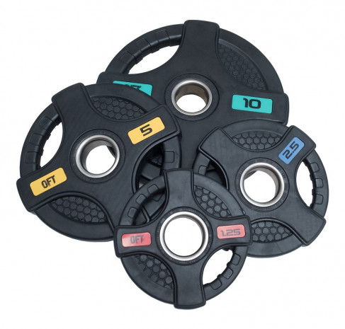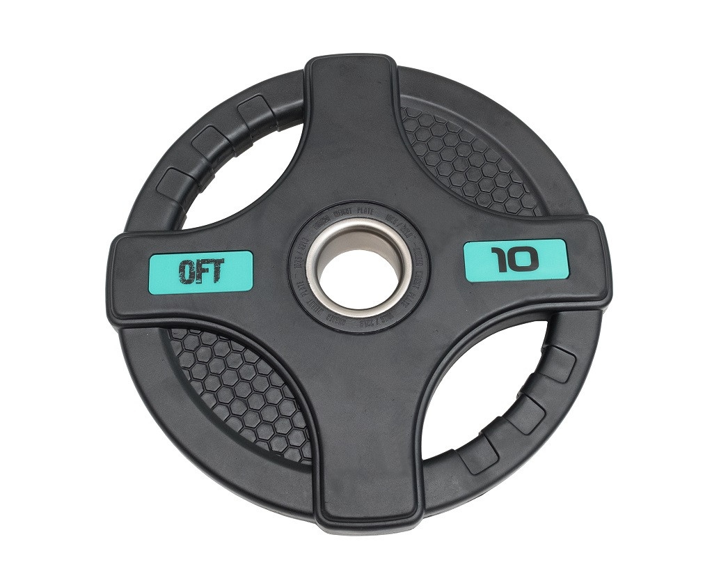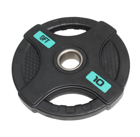 Диск олимпийский обрезиненный ORIGINAL FITTOOLS FT-2HGP-10 (10 кг черный с двумя хватами)