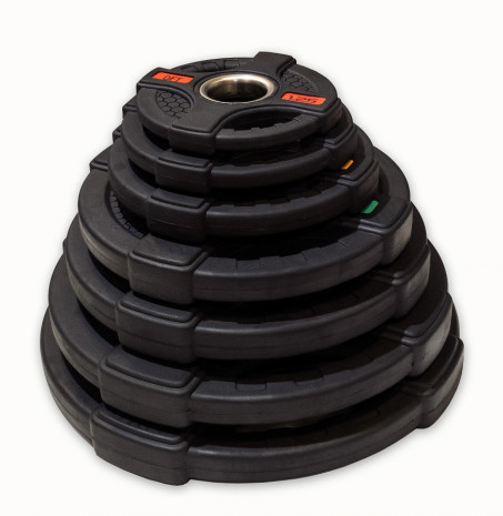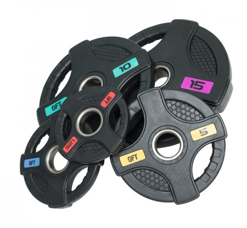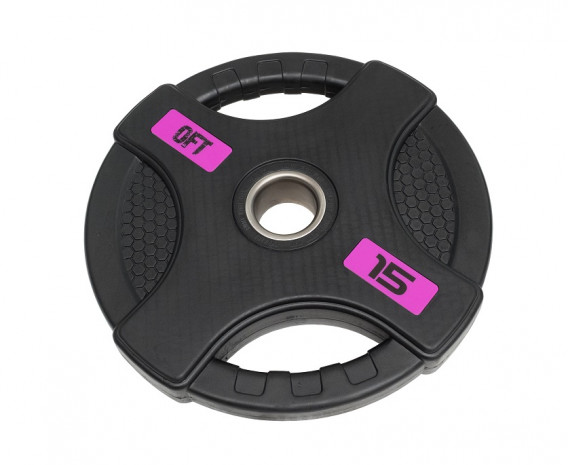 Диск олимпийский обрезиненный ORIGINAL FITTOOLS FT-2HGP-15 (15 кг черный с двумя хватами)