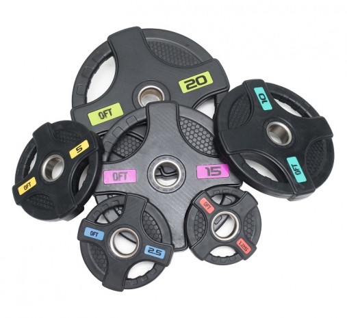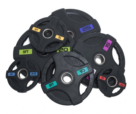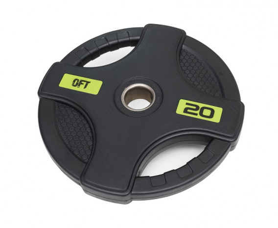 Диск олимпийский обрезиненный ORIGINAL FITTOOLS FT-2HGP-20 (20 кг черный с двумя хватами)