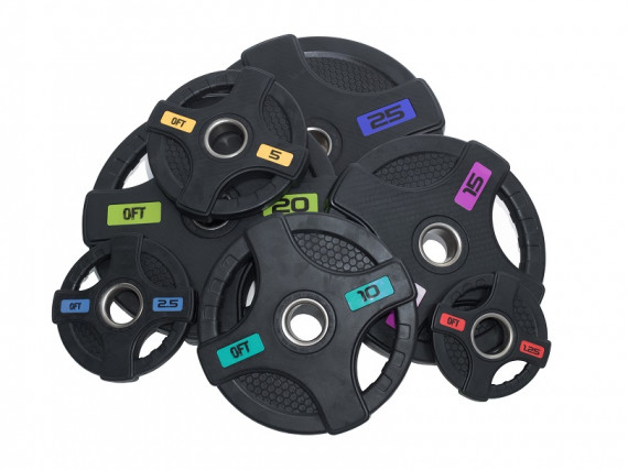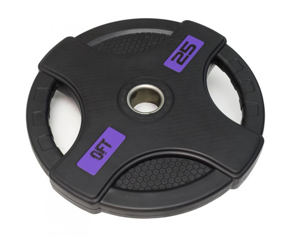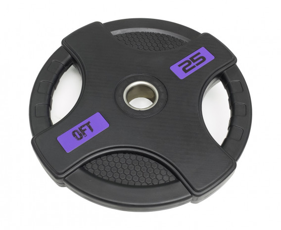 Диск олимпийский обрезиненный ORIGINAL FITTOOLS FT-2HGP-25 (25 кг черный с двумя хватами)