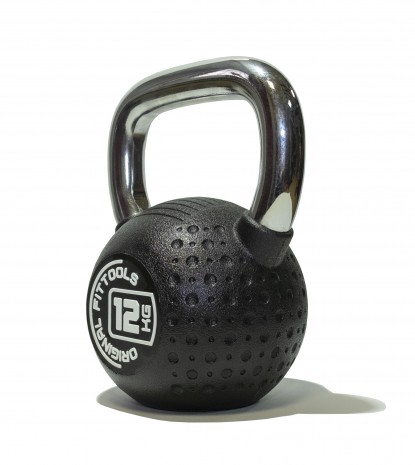 Премиальная полиуретановая гиря с хромированной ручкой FT-KB-CPU-12 бренда Original Fittools продается как отдельно, так и в наборе из 10-ти гирь, в который входят снаряды от 4-х до 32-х кг.