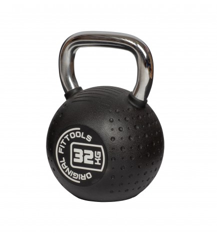 Премиальная полиуретановая гиря с хромированной ручкой FT-KB-CPU-32 бренда Original Fittools продается как отдельно, так и в наборе из 10-ти гирь, в который входят снаряды от 4-х до 32-х кг.