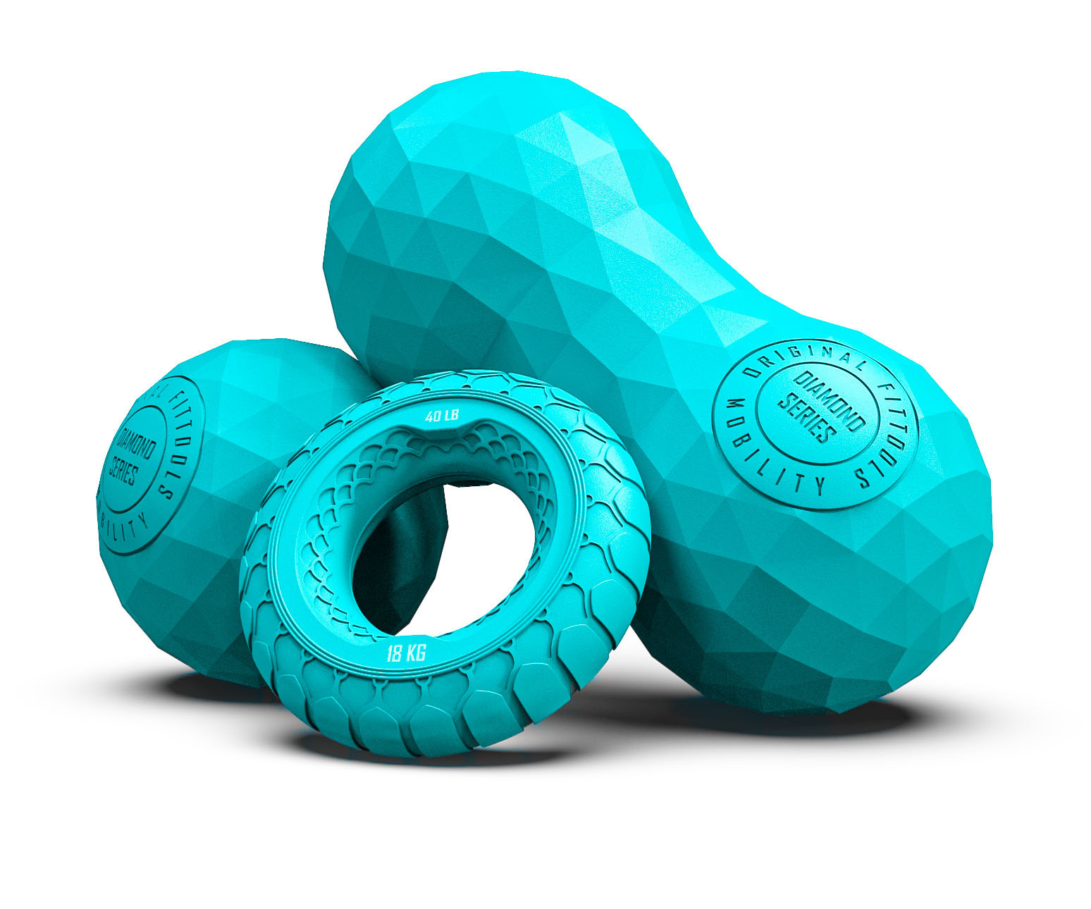 Набор из 2-х массажных мячей с кистевым эспандером ORIGINAL FITTOOLS FT-SM3ST-TQ (бирюзовый)