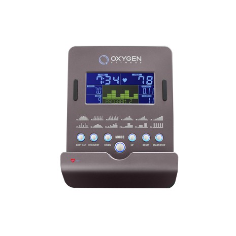 Компьютер снабжен удобным LCD-дисплеем с диагональю 5,5 дюйма. Имеются 12 тренировочных программ, позволяющих улучшать выносливость, скоростные качества, укреплять сердечно-сосудистую систему и сбрасывать вес. Также можно воспользоваться ручным режимом для создания личной программы. Важной чертой является наличие 4 программ, ориентированных на частоту пульса: Вы сможете заниматься с интенсивностью в 55, 75, 90 или 100% от максимального пульса, соответствующего цели тренировки. Чтобы частота сердцебиения отслеживалась максимально точно, компьютер оснащен беспроводным приемником, а ремень-передатчик входит в комплект. Благодаря наличию эргонометрической функции Вы сможете зафиксировать необходимый уровень нагрузки, который будет оставаться неизменным при любой скорости вращения педелей. После окончания занятия функция Recovery расскажет о способностях сердечно-сосудистой системы к восстановлению после физических нагрузок, а жироанализатор сообщит дополнительную информацию о результативности тренировки.