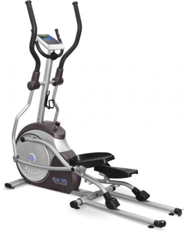 Эллипсоид Oxygen EX-35 оснащен электромагнитной системой нагружения и утяжеленным маховиком весом 10 кг. Данная модель относится к линейке «X», главной особенностью которой является переднерасположенный маховик. Такая конструкция является самой современной, обеспечивая тренажеру улучшенную биомеханику, так как неправильное выполнение упражнений на таком эллипсоиде практически невозможно. Маховик, расположенный в передней части, не даст заваливаться назад, перегружая колени и колени, обеспечив правильное движение ног и равномерное распределение нагрузки. Это даст возможность укрепить сердечно-сосудистую систему, подтянуть мышцы голеней, а также согнать жир с живота и бедер. Именно сочетание переднего привода с демократичной ценой дарит тренажеру Oxygen EX-35 лидирующие позиции среди подобных моделей.