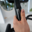 Поручни тренажера выполнены в удобной изогнутой форме с мягкой оплеткой. Тренажер также оснащен неподвижными поручнями с датчиками пульса, позволяющими контролировать свою частоту сердечных сокращений во время тренировки.
