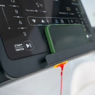Консоль беговой дорожки оснащена 5 LED-дисплеями с белой индикацией, на которых отображаются различные показатели, такие как время, скорость, дистанция, уровень наклона, калории, пульс, шаги и профиль программы.