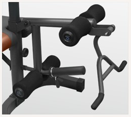 Стойка под штангу используется в двух различных вариантах. Ее можно сочетать со скамьей для жима штанги, либо использовать отдельно для приседов. Стойка имеет свою особенность, которая заключается в наличии четырех держателей для штанги. Такая особенность делает выполнение упражнений безопасным. Верхние держатели короткие, они фиксируют штангу сверху. Нижние держатели длинные, они расположены немного выше груди. Регулировать положение штанги можно с помощью четырех отверстий на стойках. Еще большее удобство обеспечивают держатели для блинов, которые располагаются по краям стойки. Их диаметр 26 или 51 мм (переходники входят в комплект).