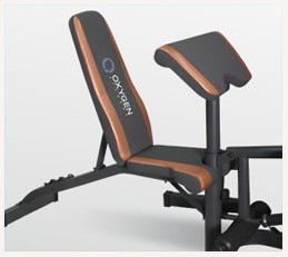 Силовая скамья Fort Smith компании Oxygen сочетает в себе прямоугольный и круглый профиль. Общая нагрузка, которую выдерживает скамья – 250 кг. Тренажер, состоящий из двух блоков, включает в себя скамью для жима со стойкой под штангу и партой на бицепс. Стойка может использоваться отдельно от скамьи. Благодаря этому удобно выполнять приседания, а также самому определять нужно для себя расположение стойки и скамьи.