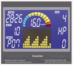 Беговая дорожка соответствует высокому премиальному уровню. Широкое беговое полотно гарантирует фантастический простор для тренировок, независимо от выбранной скорости. Диапазон скоростей варьируется от 1 до 18 км/час. Для удобства тренировочный компьютер оборудован жидкокристаллическим цветным дисплеем, диагональ которого составляет 6,5 дюймов. На экране отображаются предустановленные программные профили. Программный пакет включает 24 универсальных режима. Выбрав оптимальные параметры тренировки, спортсмены смогут за короткий промежуток времени укрепить мышцы, повысить выносливость и нормализовать работу сердца. При необходимости устанавливается особая программа для оперативного сжигания лишних килограммов. Два пульсозависимых режима имеют предустановленные значения 65% или 85% от целевого максимального пульса. Высокоточный беспроводной приемник способствует комфортному измерению пульса. Для создания индивидуального режима тренировок можно выбрать один из четырех предустановленных пользовательских режима.