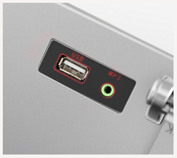 Разъемы USB/AUX обеспечивают вывод аудио файлов на динамики 3 Вт.