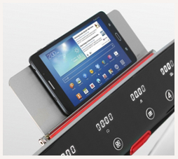 Подставка под гаджеты позволяет надежно установить смартфон или планшет, чтобы удобно пользоваться им во время тренировки.