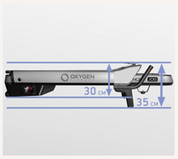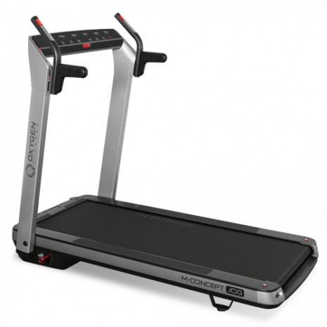 Беговая дорожка M-Concept Jog бренда Oxygen представляет серию M-Concept, в которую входят две уникальные беговые дорожки торговой марки Oxygen Fitness™ ультракомпактной конструкции. Толщина тренажера в сложенном виде составляет 35 см, а при снятых небольших поручнях всего 30 см. Сложенная дорожку можно легко поместить в любом небольшом пространстве, например, в кладовке или под кроватью, причем хранить ее можно как в вертикальном, так и в горизонтальном положении.