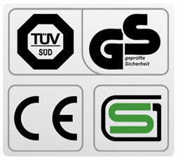 Обязательные сертификаты: европейский CE, немецкий GS TUV, японский SG