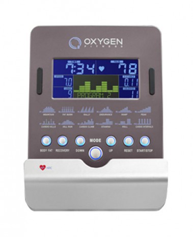 Велоэргометр UB HRC компании Oxygen оборудован многофункциональным жидкокристаллическим дисплеем диагональю 5,5 дюймов. Программный пакет включает 12 программ, позволяющих за короткий срок развить выносливость и скорость, укрепить сердечно-сосудистую систему и при необходимости похудеть. При желании каждый пользователь может выбрать определенный режим, чтобы создать собственную программу с подходящими параметрами. Немаловажное значение имеет наличие четырех пульсозависимых программ. Они имеют предустановленные значения - 55%, 75%, а также 90% и 100% от максимального целевого пульса. Беспроводной приемник, встроенный в конструкции, предназначен для точного определения пульса человека. Для фиксации необходимого уровня нагрузки предусмотрена эргонометрическая функция (Ватты). Данный параметр остается всегда постоянным, независимо от непосредственной скорости вращения педалей. Незаменимая опция Recovery по завершении тренировки оценит способность человека и его сердечно-сосудистой системы к быстрому восстановлению. Дополнительную информацию о состоянии пользователя предоставляет жироанализатор (Body Fat).