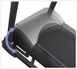 Беговая дорожка в сложенном виде не займет много места. Она оборудована гидравлической системой складывания, которая позволяет без труда сложить тренажер, а самое главное плавно разложить дорожку с медленным опусканием полотна. Поручни оснащены обязательными сенсорными датчиками пульса. Наряду с этим на поручнях расположены удобные кнопки для оперативного изменения угла наклона и скорости. Мультимедийный функционал основан на мощных колонках, имеется вход Audio IN, чтобы можно было без усилий подключить любой MP3 проигрыватель. Он предназначен для воспроизведения различных аудио файлов, чтобы занятия проходили в приятной атмосфере.