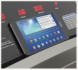 Ровная и гладкая тренировочная консоль, которой оснащена эта модель беговой дорожки, имеет сенсорные клавиши управления. Строгая панель главного дисплея имеет черную акриловую поверхность. Современная консоль придает тренажеру стильный внешний вид, независимо от того включен дисплей в рабочем режиме или находится в нерабочем состоянии с выключенным дисплеем.