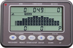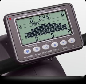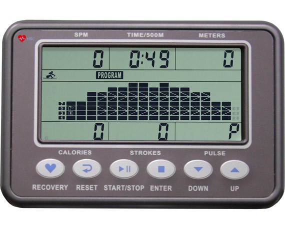 Конструкция легко складывается, она способна сэкономить площадь хранения. Все основные параметры высвечиваются на черно-белом экране жидкокристаллического дисплея. Вы сможете полностью контролировать установленную нагрузку. Размер дисплея составляет 5,5 дюйма. Тренировочный компьютер включает 12 предустановленных программ. Они в первую очередь способствуют развитию выносливости и скоростных качествах, а также направлены на укрепление сердечно-сосудистой системы. Помимо этого регулярные занятия на представленном гребном тренажере помогут сбросить лишние жировые килограммы. При необходимости можно настроить индивидуальный пользовательский профиль. Для тренировок с полным контролем пульса следует выбирать особые пульсозависимые режимы работы. Для Вашего комфорта в компьютере также встроен беспроводной приемник.