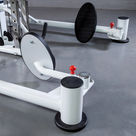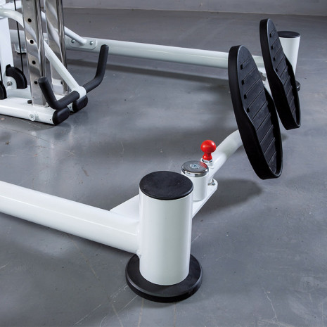 Конструкция многофункционального тренажера 1FE122SR бренда Panatta включает складывающиеся упоры для ног с антискользящим покрытием.