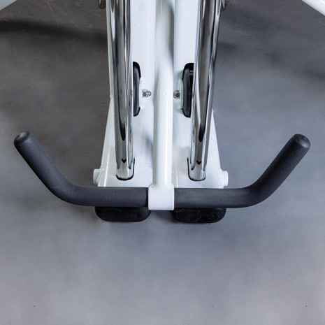 Вес грузового стека в стандартной комплектации составляет 100 кг, а изменение нагрузки осуществляется с шагом 5 кг. Опционально можно выбрать тренажер с грузовым стеком весом 120 кг. Прочная рамная конструкция выполнена из усиленного стального профиля, что обеспечивает общую надежность тренажера.