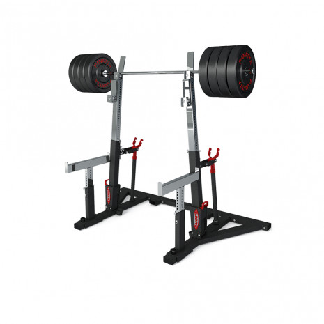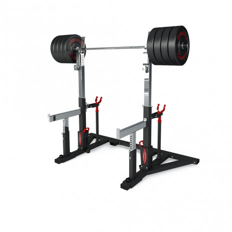 Комбинированная стойка со скамьей для соревнований по пауэрлифтингу 1PWL102 бренда Panatta - тренажер двойного функционала, в котором стойка для приседаний легко превращается в скамью для жима. Тренажер предназначен для профессионального пауэрлифтинга, но также может использоваться для силовых тренировок с тяжелыми весами, в том числе для растяжки и приседаний. Прочная надежная конструкция соответствует требованиям IPF (Международной федерации пауэрлифтинга).
