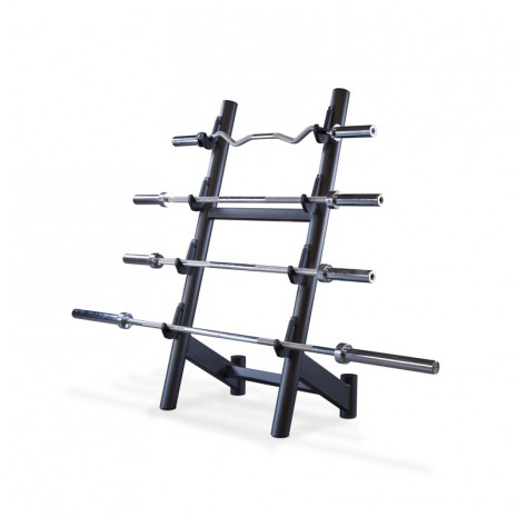 Компактная вертикальная конструкция стойки для хранения грифов обеспечивает экономию пространства в тренажерном зале.