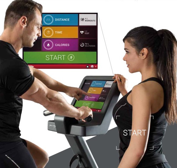 Настройки и регулировки реализуются через инновационные дисковые системы управления, что позволило максимизировать в лучшую сторону характеристики емкостного сенсорного дисплея. Пользователю доступен каждый блок предлагаемых видов тренировки. После ввода веса и возраста пользователь может начинать тренировку.