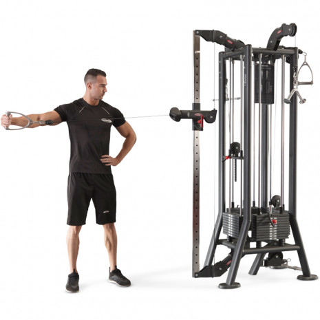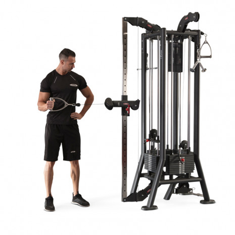 Мультистанция 1FE112 компании Panatta имеет четыре рабочих места. Он оснащен нижними и верхними блоками. На тренажере выполняются упражнения на грудь, пресс, бицепс, дельты, трицепс, ягодичные мышцы, мышцы внешней, задней и внутренней поверхности бедра.