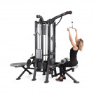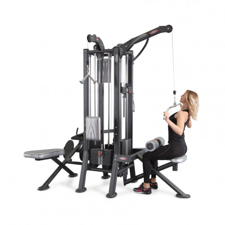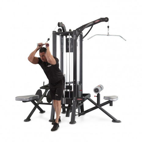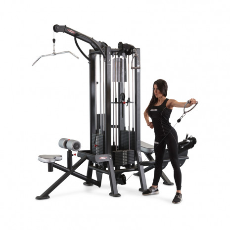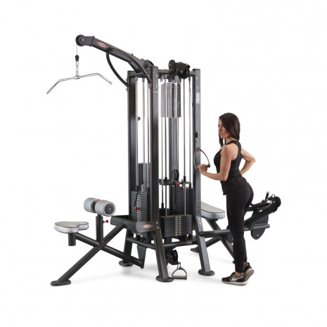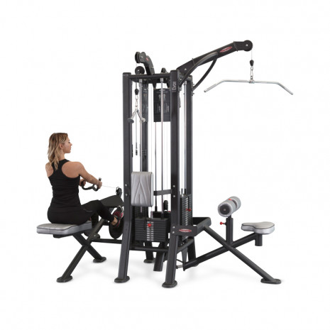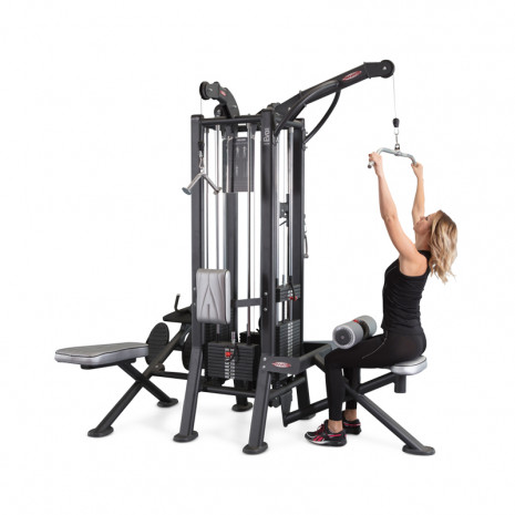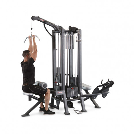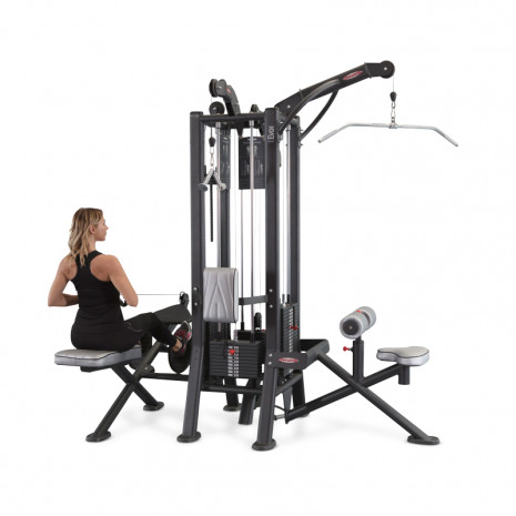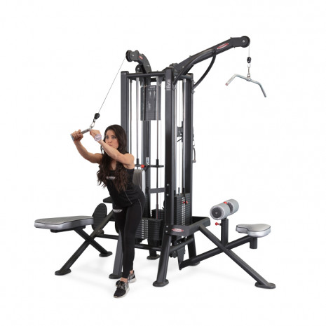 Мультистанция 1FE115 компании Panatta имеет четыре рабочих места. На тренажере выполняются тяги на нижнем и верхнем блоках, а также тяги снизу и сверху в положении сидя.